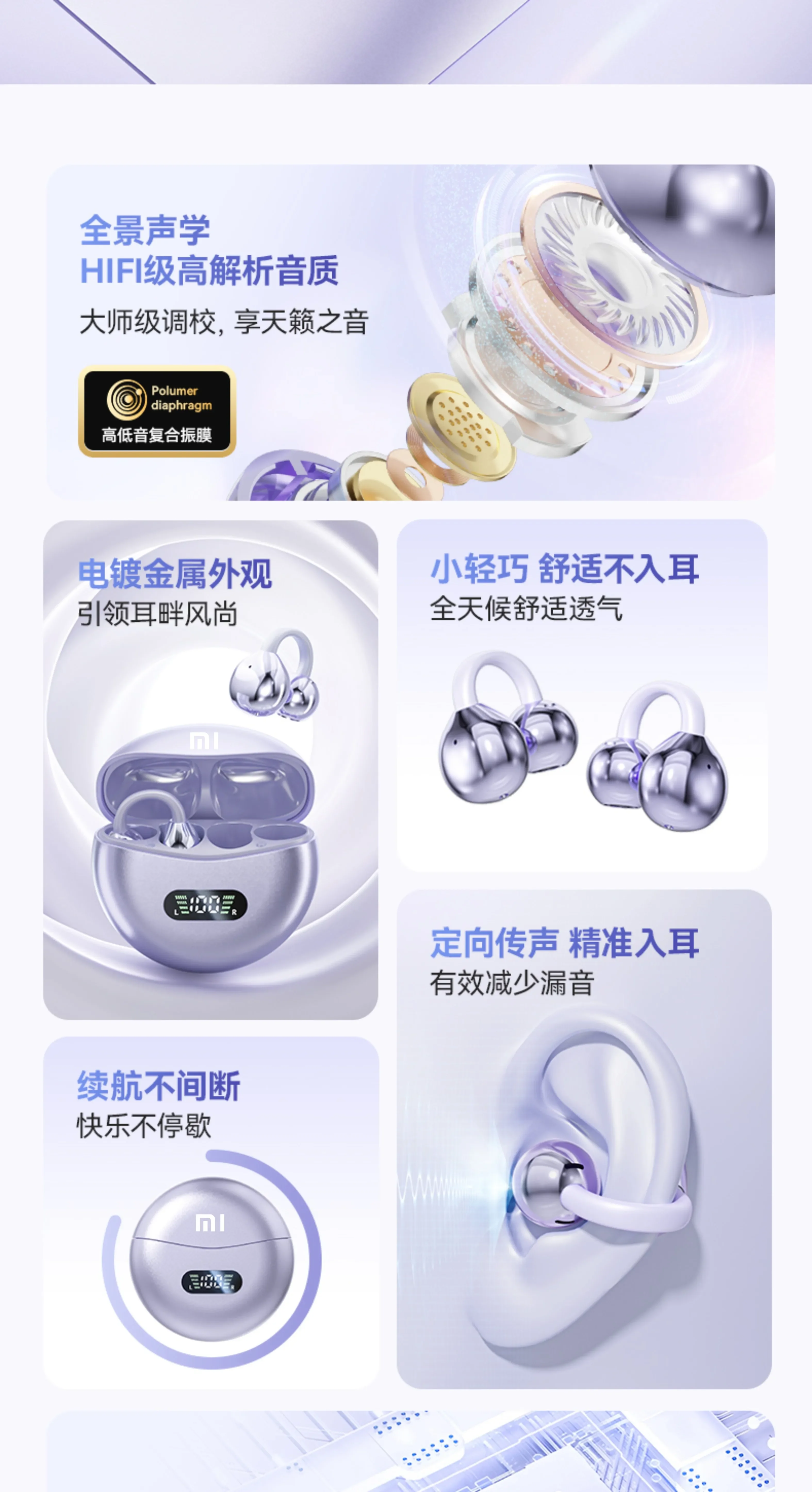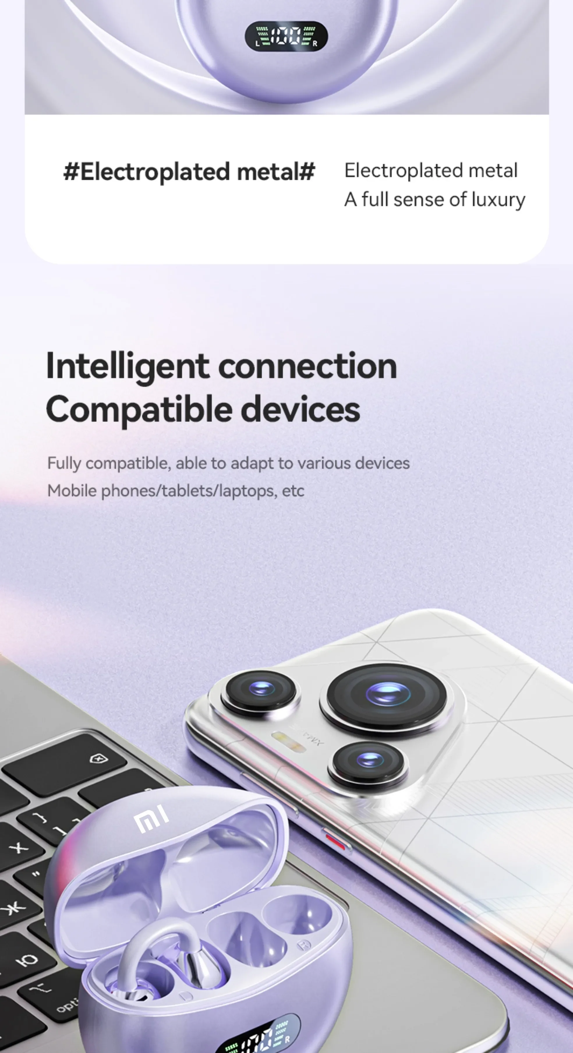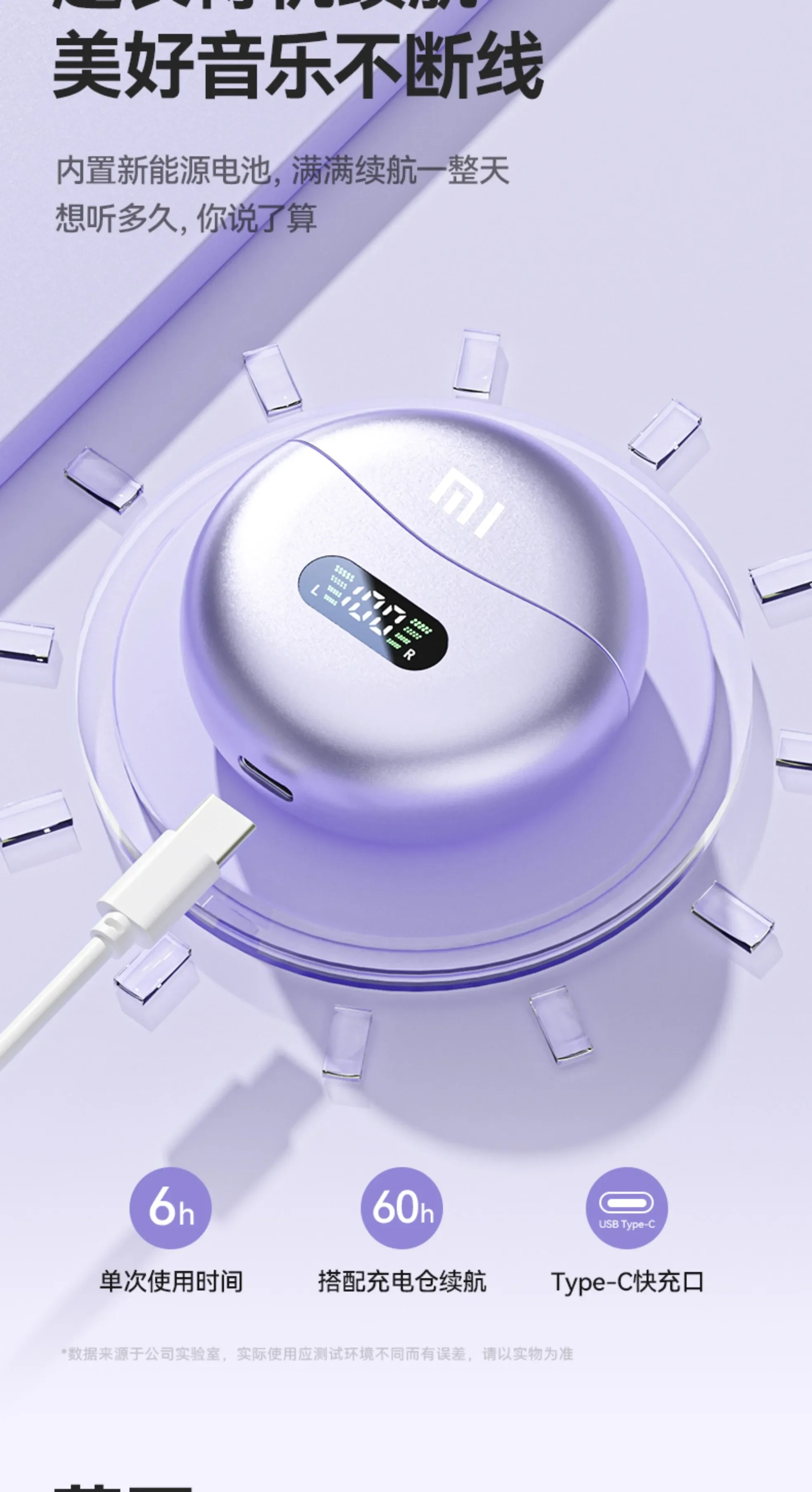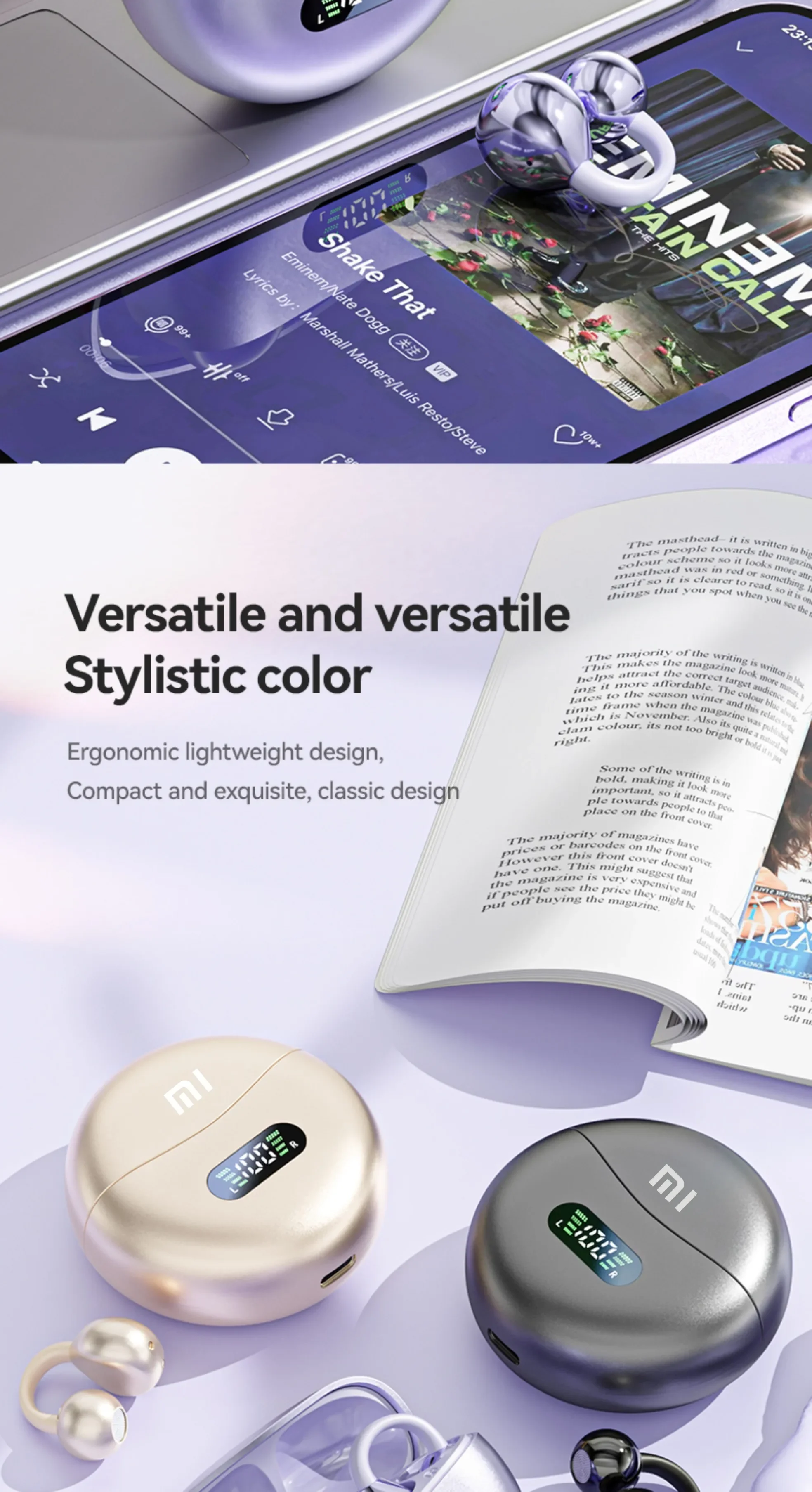 Xiaomi M79 Bone Conduction Earphones Bluetooth 5.4 Earbuds Clip on Ear Comfortable Waterproof Sport Digital Display Headsets